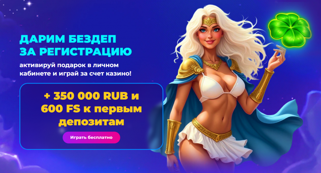 Приветственный пакет — бонусные средства и фриспины распределены на первые четыре пополнения счёта. Суммарно пакет достигает 350 000 ₽ плюс 600 FS. Разбивка по каждому депозиту — в разделе ниже.